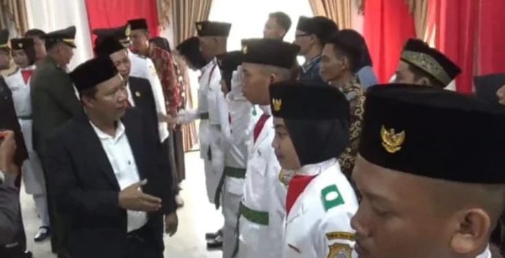 TANJAB TIMUR – Bupati Tanjab Timur, Romi Hariyanto, mengukuhkan 30 orang anggota Pasukan Pengibar Bendera Pusaka (Paskibraka), yang terdiri dari 15 putra dan 15 putri, di aula Rumah Dinas Bupati, Jumat 16 Agustus 2024 sore.